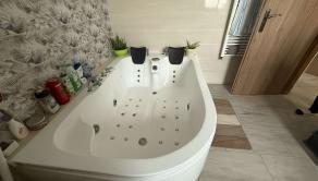 - kúpeľňa s perlivou vaňou, dvomi umývadlami a toaletou na poschodí