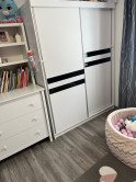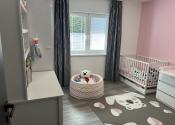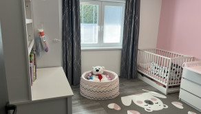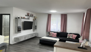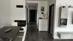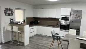 Ponúkame Vám čiastočne zariadený rodinný dom s dvojgarážou. V predsieni, kúpeľni a technickej miestnosti je dlažba, v ostatných miestnostiach je laminátová podlaha. V izbách sú vstavané skrine. V celom dome je elektrické podlahové kúrenie Devi, obývacia izba je doplnená rohovým krbom. V obývacej izbe je klimatizácia, ktorou sa dá vykurovať aj chladniť. V obývacej izbe je predpríprava na video vrátnik. V celom dome je dostupný super rýchly optický internet, v dome aj na celom pozemku budete mať dobrý internet. Príprava na optický internet a televíziu je v každej izbe aj v obývacej izbe.