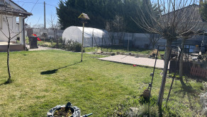 K domu patrí zastrešená terasa a dvojgaráž s antracitovou farbou a diaľkovo ovládanou elektrickou bránou. Garážová brána sa otvára do ulice, kde sa pred domom nachádza betónová plocha o rozmeroch 9x10 m pre pohodlné parkovanie. Na dvore sa nachádza betónovaná časť 3x4 m na grilovanie alebo postavenie bazéna. Okrem predzáhradky je celý dvor trávnatý a oplotený betónovým plotom. Pozdĺž plota sú trvalkové záhony, ktoré kvitnú počas celého leta. Na dvore je tiež prístrešok pre dvoch psov a klietka, kde sa môžu zvieratá ukryť, ako aj plechová búda pre nástroje o rozmeroch 3x2 m. Na dvore je tiež možnosť pestovania zeleniny v fóliovníku o rozmeroch 6x3 m.
