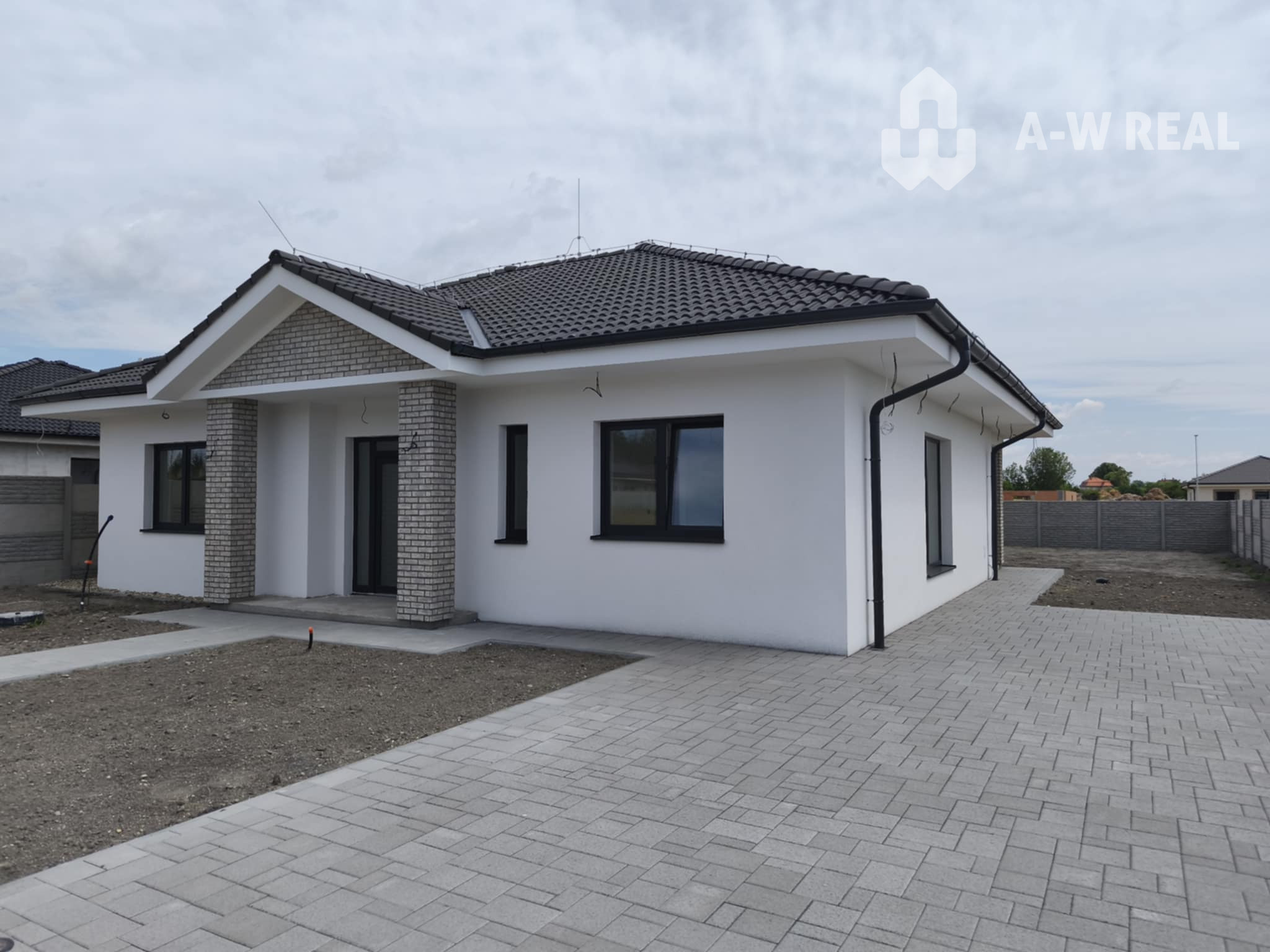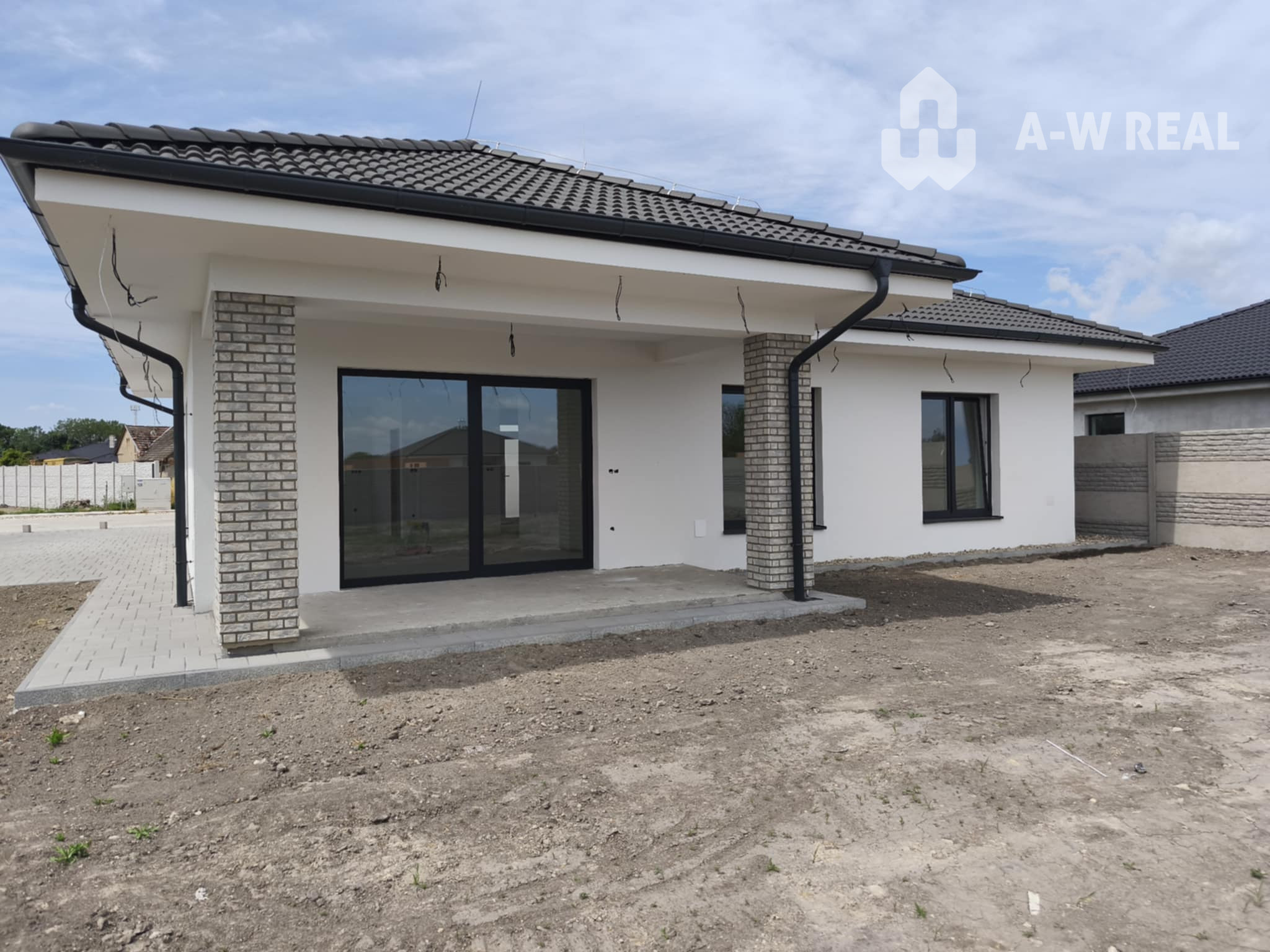 Realitná kancelária A-W Real Vám ponúka na predaj nádherný, atraktívny, priestranný, samostatne stojací 4-izbový, nepodpivničený, jednopodlažný rodinný dom v obci Povoda pri Dunajskej Strede v novovybudovanej štvrti v časti Lidér Tejed blízko hlavnej cesty 63.