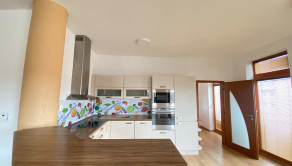 Dispozícia bytu: - vstupná predsieň, kúpeľňa s vaňou a toaletou, priestranná obývacia izba prepojená s modernou kuchyňou so vstavanými spotrebičmi, samostatná spálňa, hosťovská izba alebo pracovňa, balkón s výhľadom na mesto – ideálny na rannú kávu či večerný relax po náročnom dni .