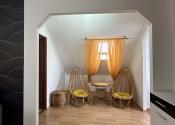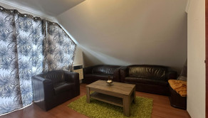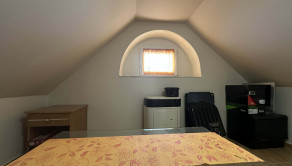 - Podkrovie: samostatný vstup po schodisku, vstupná hala, obývačka, spálňa s výstupom na balkón, detská izba s výstupom na balkón, kuchyňa so špajzou, kúpeľňa s toaletou, menšia izba. Vykurovanie riešení s plynovými kachlami -gamatkami. Ohrev vody : zásobníkový ohrievač.
