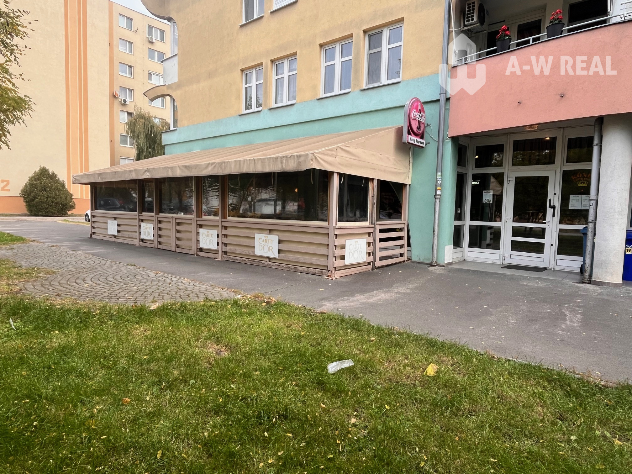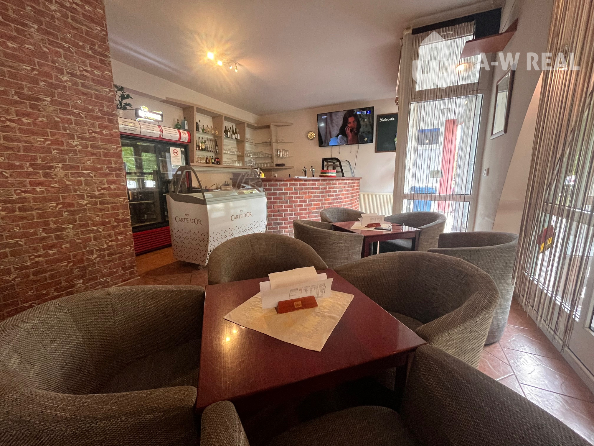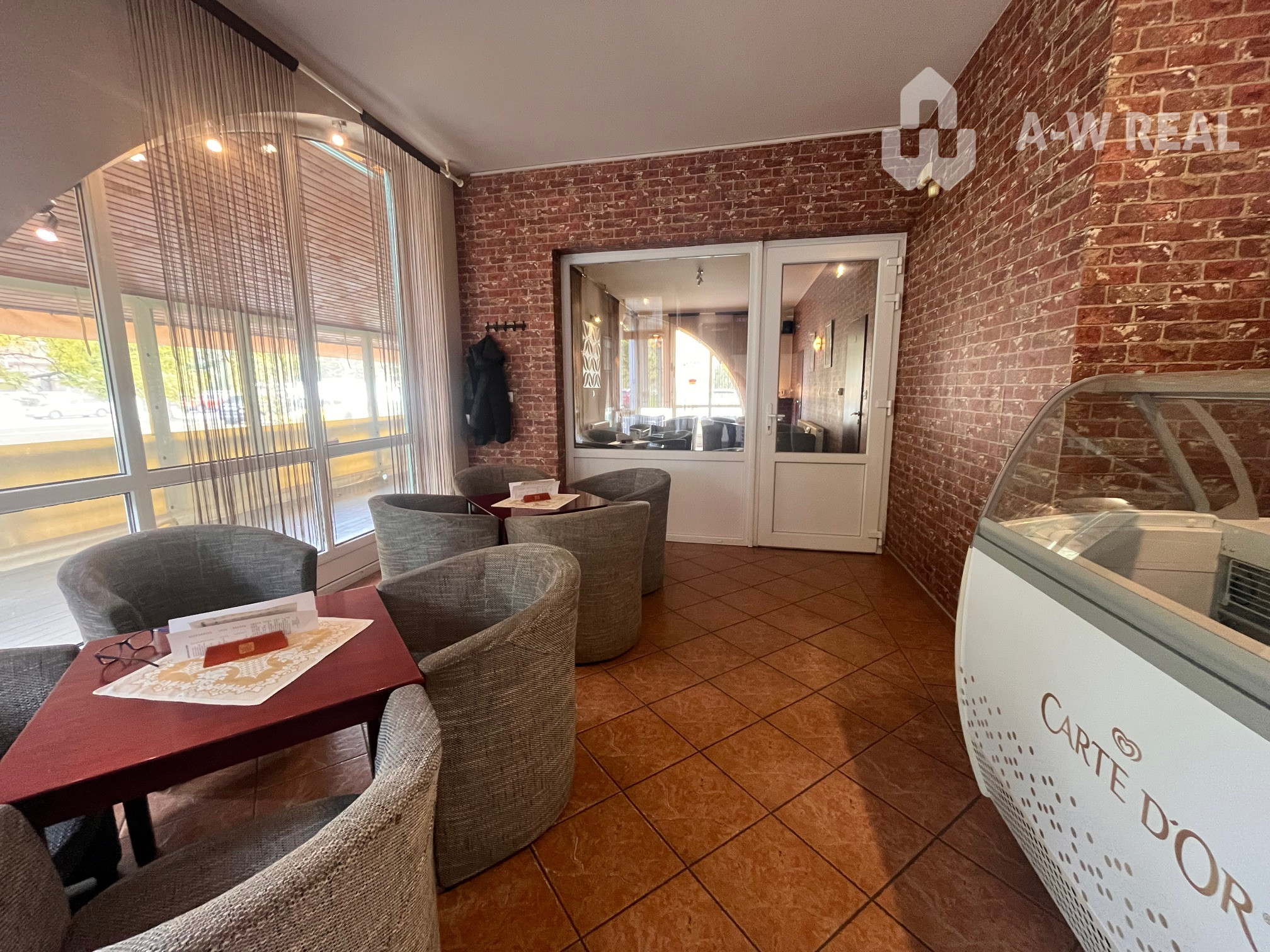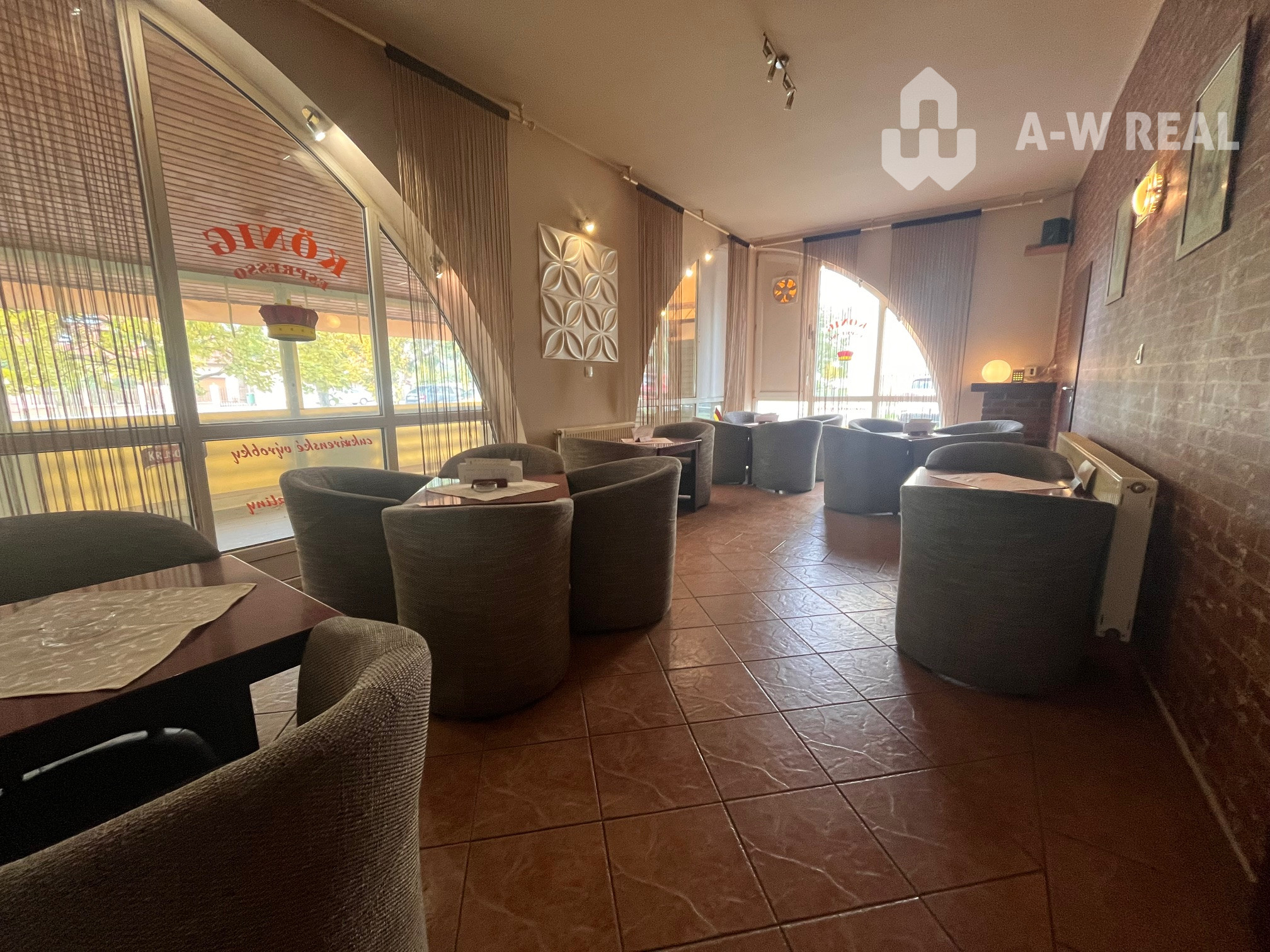 Kaviareň má veľké presklené výklady do ulice, ktoré zabezpečujú skvelú viditeľnosť a dostatok prirodzeného svetla. K dispozícii je aj príjemná terasa, ideálna na sedenie počas teplejších mesiacov.