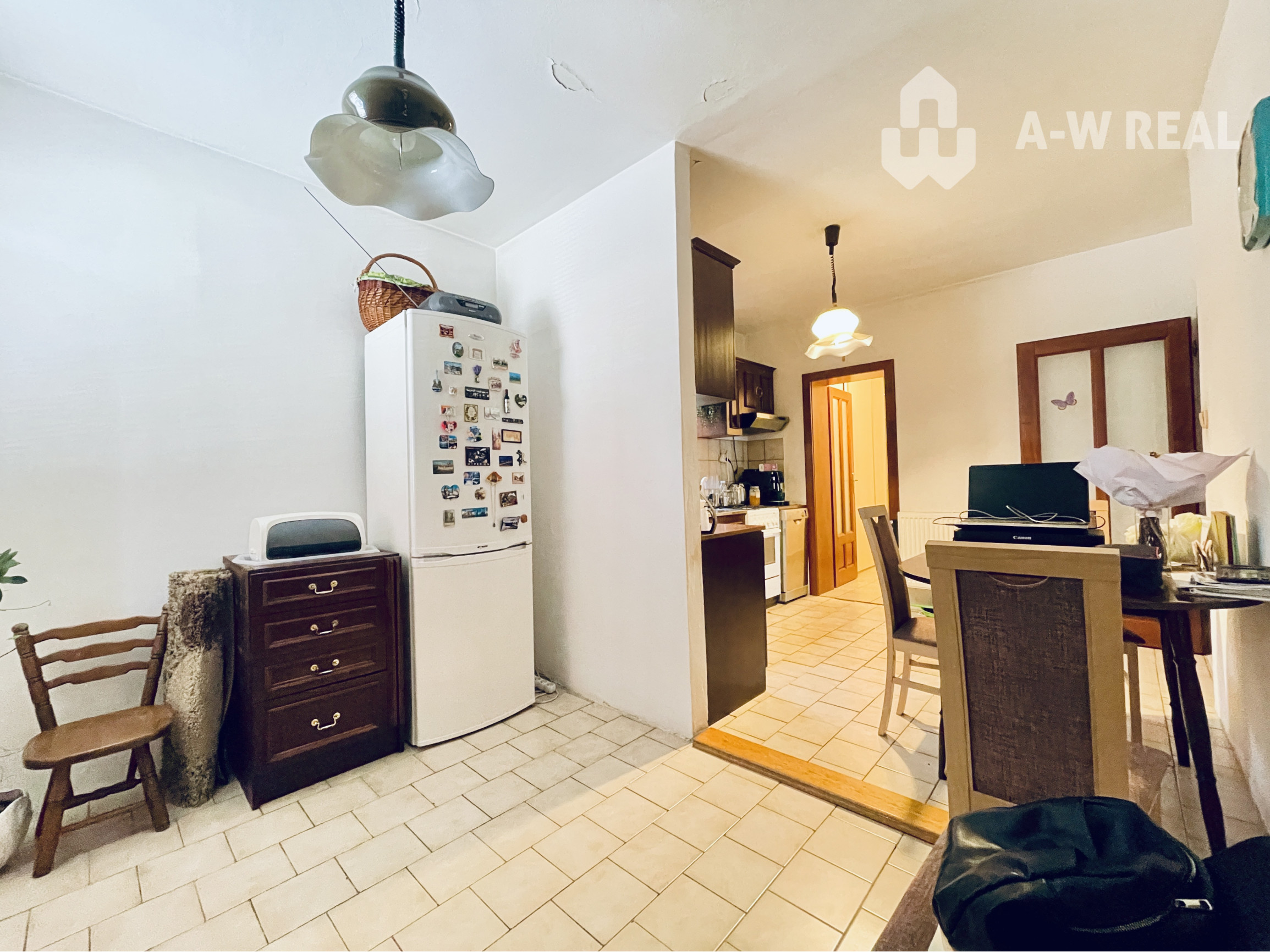 Do domu je vstup z troch strán, dve z prízemí a jeden cez pivnicu. Srdcom domu je priestranná obývacia izba na prízemí, odkiaľ vedia schody na poschodie. Na prízemí sa nachádza ešte predsieň, kuchyňa so špajzou, spálňa, kúpeľňa s rohovou vaňou a sprchou a samostatná toaleta.