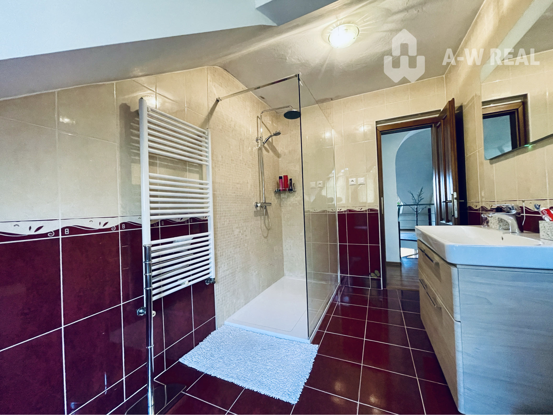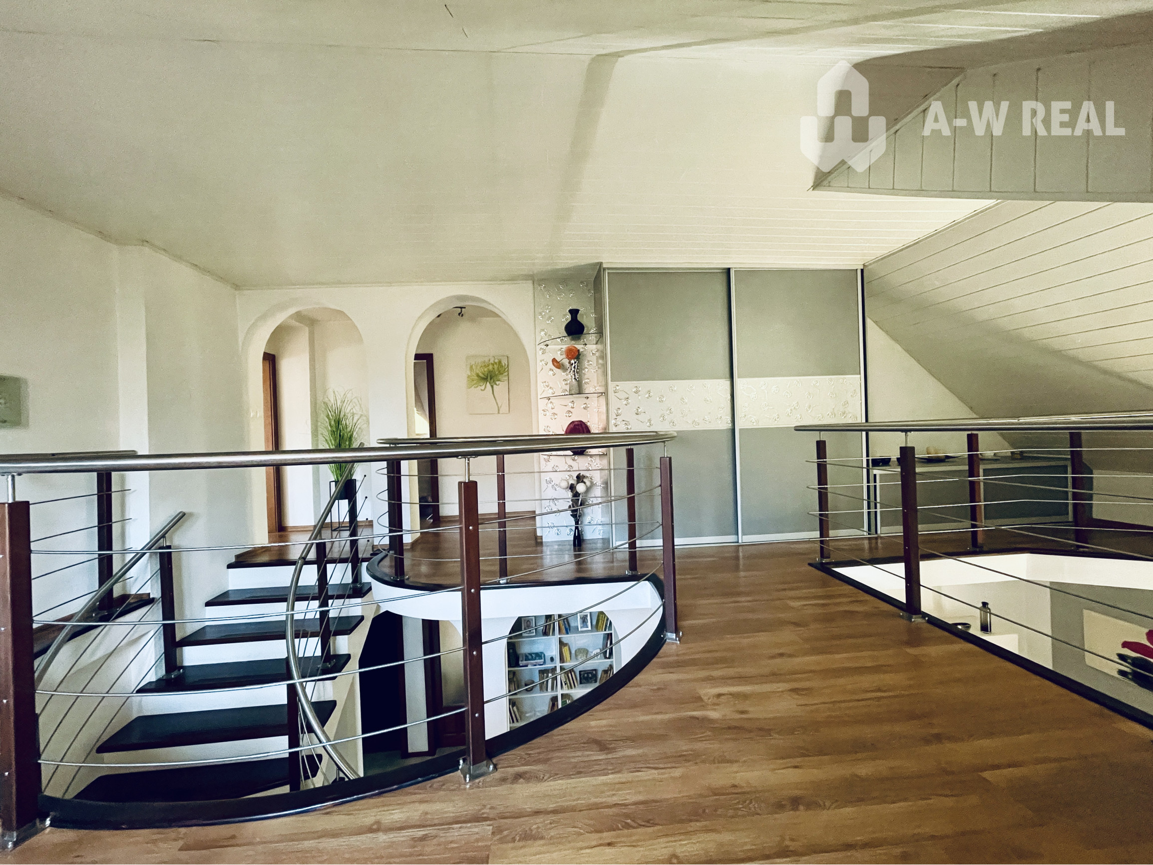 Na poschodí sa nachádza hala so vstavanou skriňou, tri izby a kúpeľňa so sprchou a toaletou.