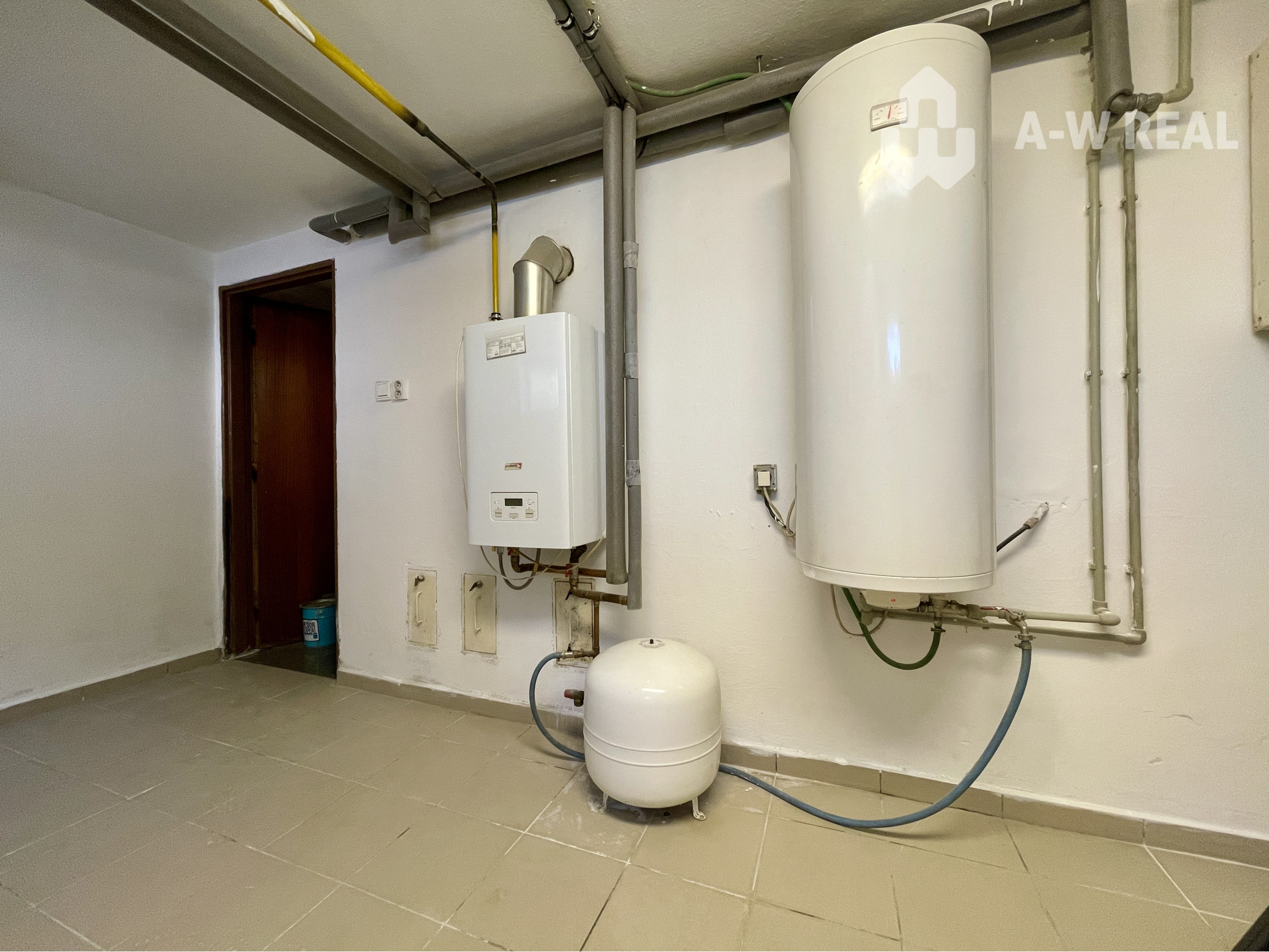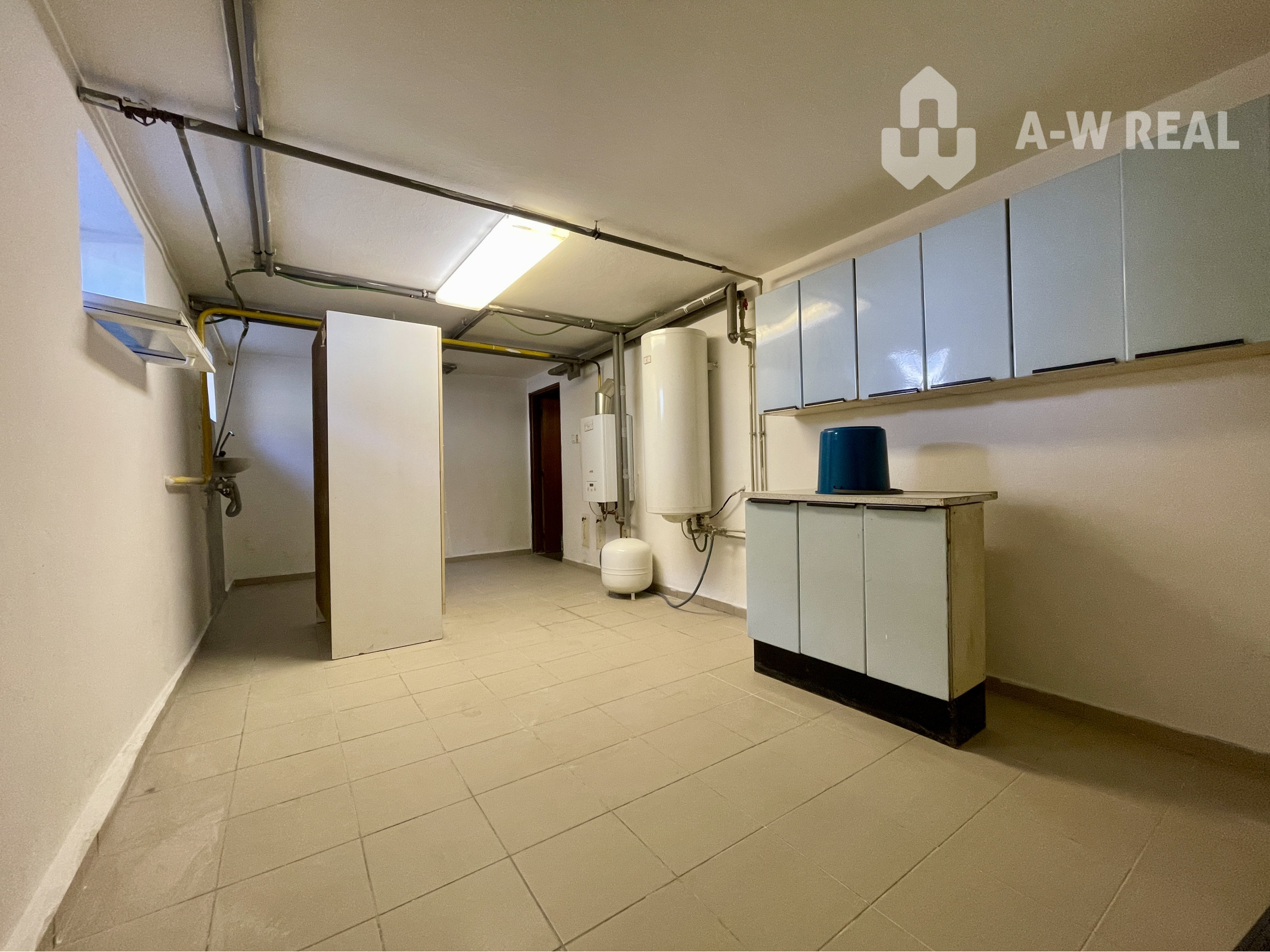 V pivnici je kotolňa, spoločenská miestnosť a sú skladové miestnosti.